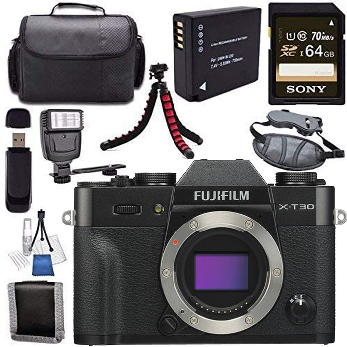 FUJIFILM X-T30 Mirrorless Digital Camera (Body Only, Black) with Sony 64GB Starter Bundle